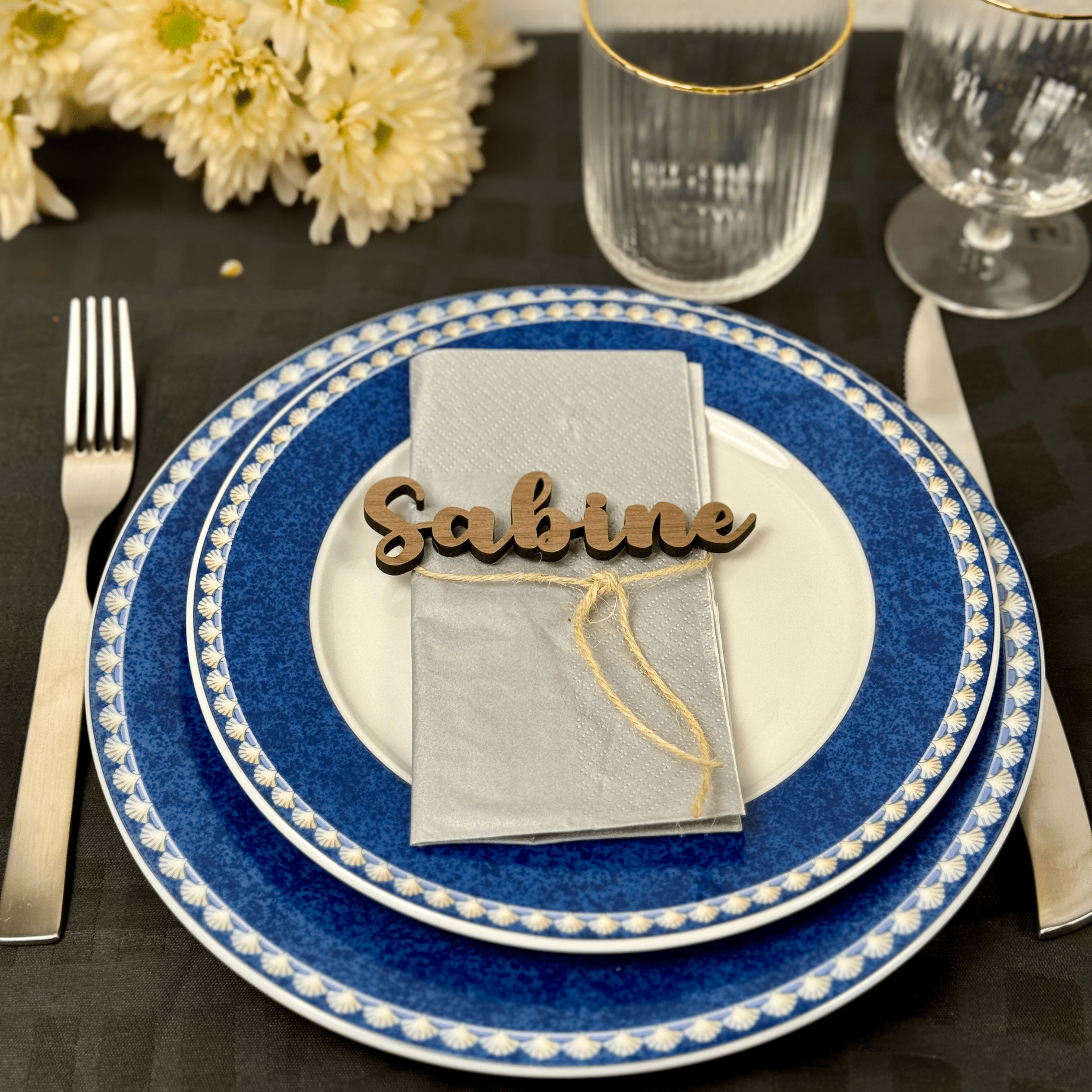 Fejr livets særlige øjeblikke med en personlig og elegant detalje, der forvandler dit festbord til en mindeværdig oplevelse. Vores personlige bordkort i træ er den perfekte tilføjelse til enhver festlig begivenhed, fra bryllupper til fødselsdagsfester og konfirmationer. Disse unikke navnekort er ikke bare en praktisk vejledning til dine gæsters placering, men også et varigt minde, som dine gæster kan tage med hjem.