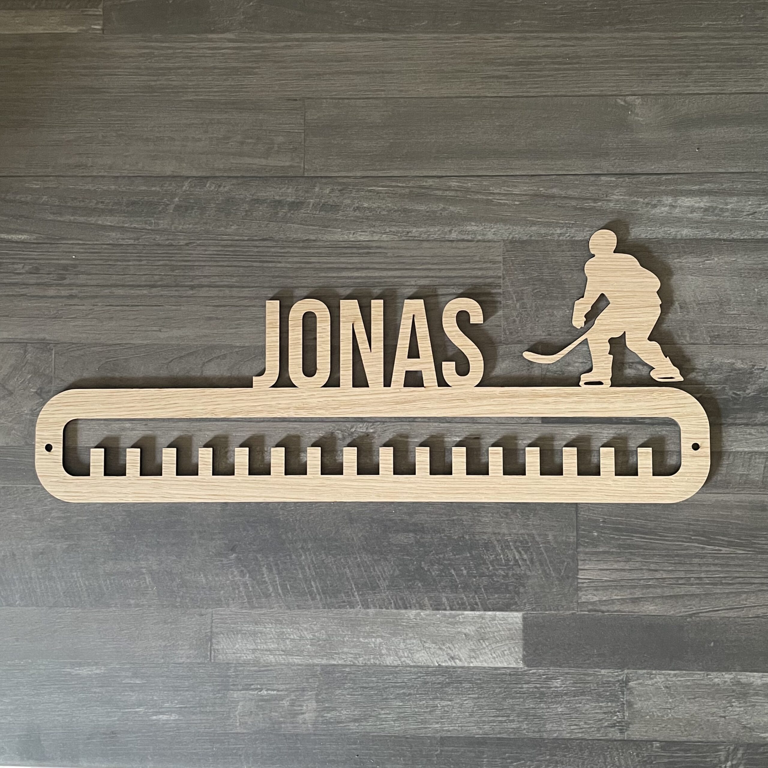 Vores medaljeholder til hockeyspilleren giver plads til op til 16 medaljer og er skabt til at vise en imponerende samling af medaljer fra hockey. Denne medalje holder er mere end blot praktisk opbevaring – den er også et æstetisk indslag. Designet er enkelt og stilfuldt, så den smelter ind i ethvert rum, uanset om det er i hockeyspillerens værelse, stuen eller endda i klublokalerne.